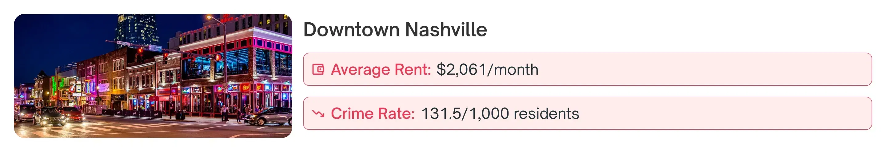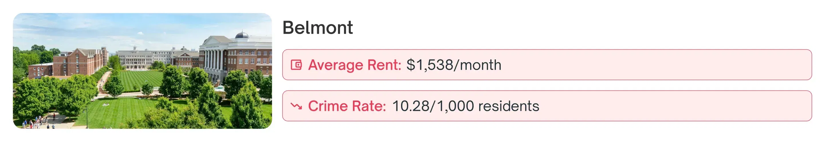 Belmont, right next to Belmont University, has a laid-back charm that’s hard to resist. With a blend of historic homes, affordable apartments, and student housing in Belmont, it’s perfect for students and young professionals alike.