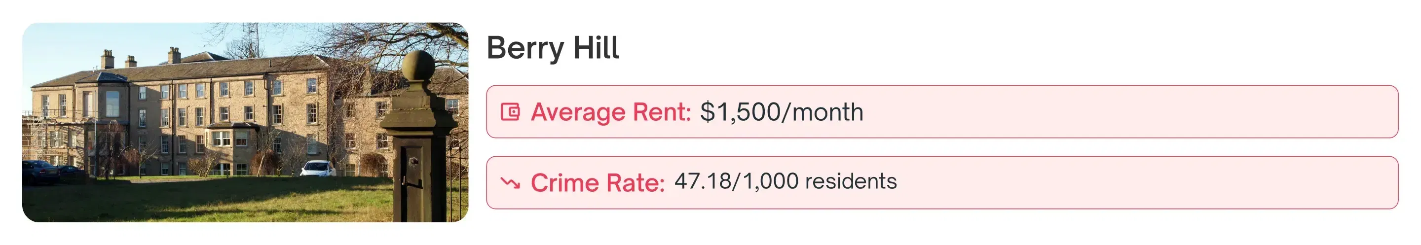 Student housing in Berry Hill is affordable and easily fits into a student budget. Due to its creative atmosphere, Berry Hill is surely a strong competitor in the best neighborhoods to stay in Nashville list.