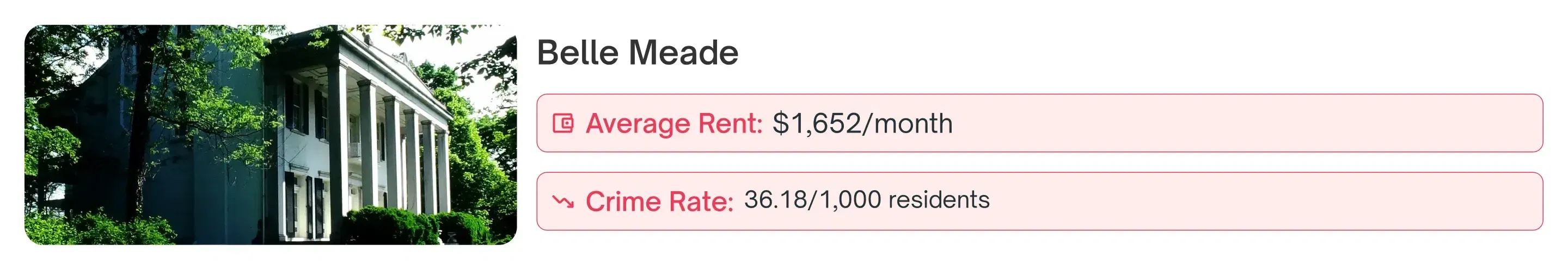 With the low crime rate and closeness to Vanderbilt University, student housing in Belle Meade is an option worth considering for those with bigger budgets or plans to share an apartment in one of the city's top neighborhoods.