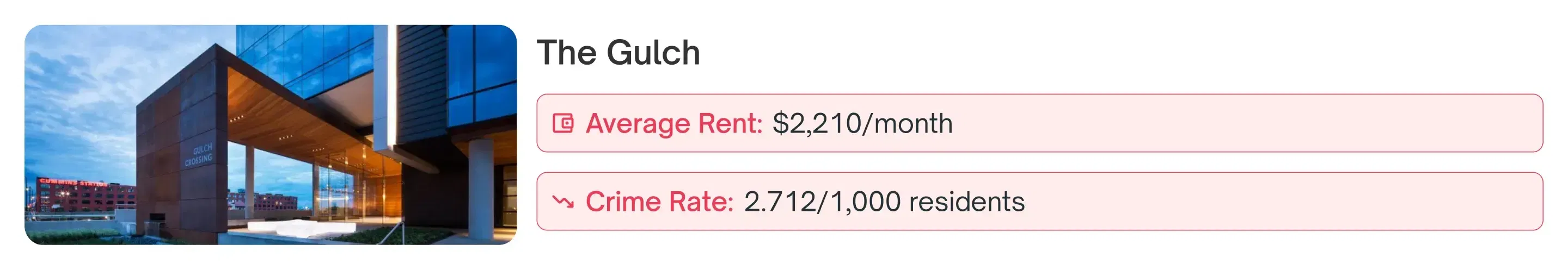 You can find everything you need here – restaurants, bars, grocery stores, gyms, and supermarkets. The Gulch connects to Downtown, Midtown, and other areas effectively through greenways, making it one of the best neighborhoods Nashville TN.