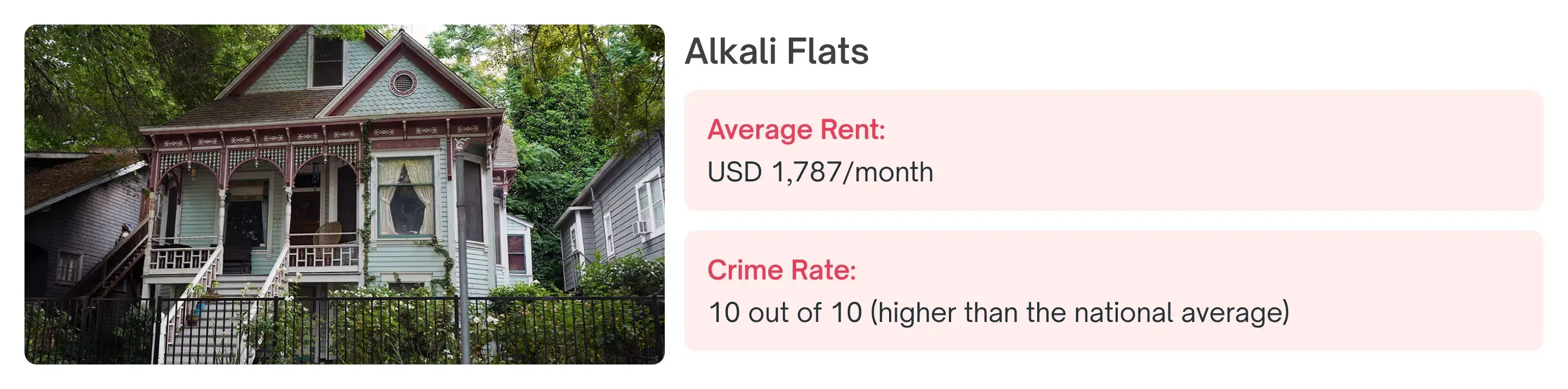 Alkali Flats is on its way to being one of Sacramento's top neighborhoods. The unique combination of being revitalised, eclectic, and possessing historic relevance, like most older buildings, was built between 1853 and 1869 which makes this neighborhood a great place to live.