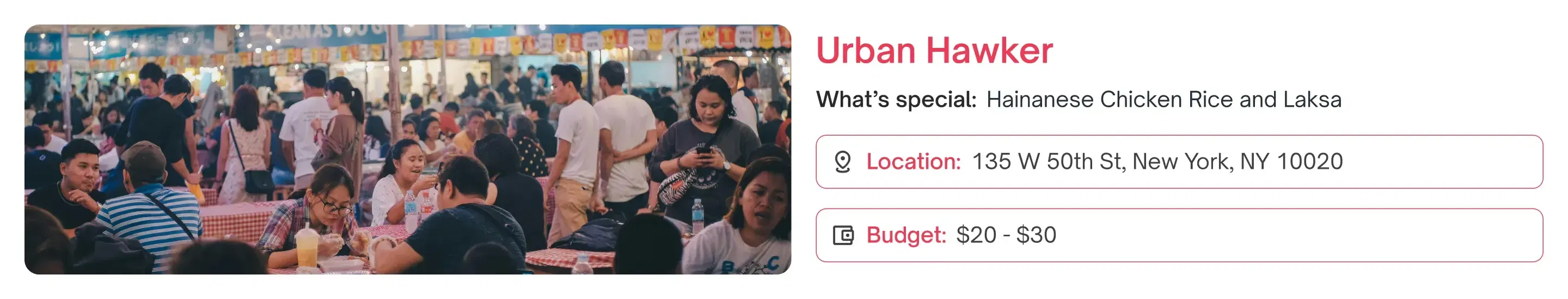 As one of the go-to restaurants in Times Square NYC, it’s known for its convenience and genuine taste. Busy students and theatergoers value its cashless, fast-paced, and lively atmosphere—a perfect spot for a tasty meal on the move.