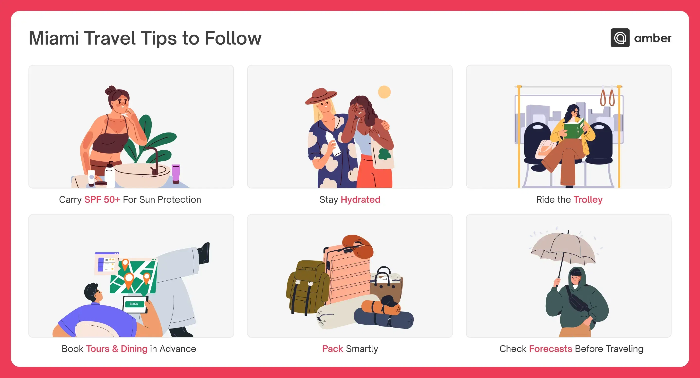 - Stay Sun-Safe: Miami sunshine is no joke. Pack SPF 50+ and reapply regularly, especially if you're spending time outdoors exploring the top 10 things in Miami.
