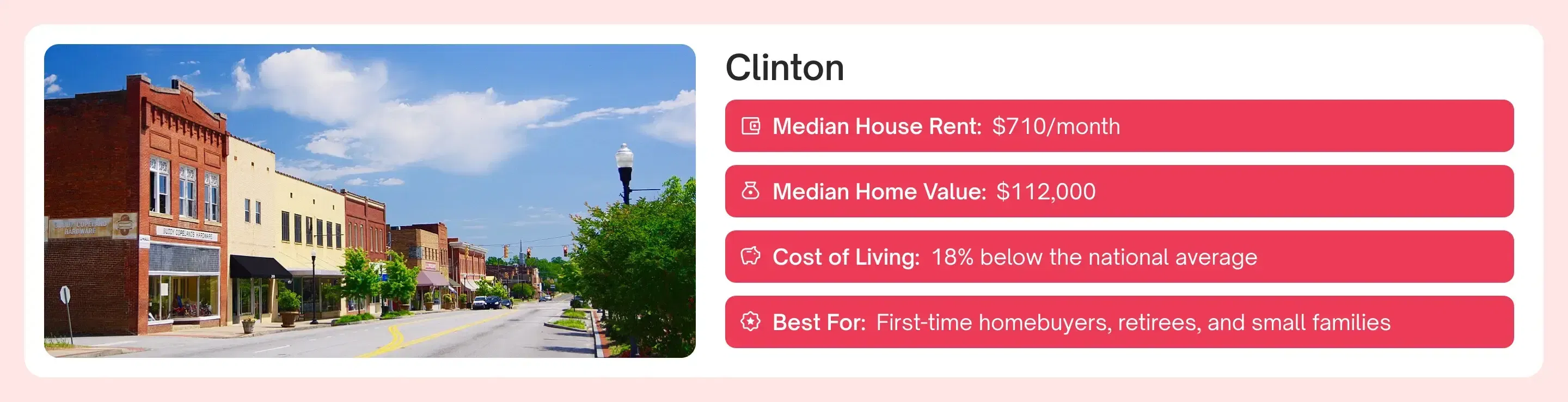 Clinton is a fantastic example of the cheapest places to live in North Carolina, where you get serious value for your money. With one of the lowest median home values and rents in the state, it’s no surprise that Clinton is considered one of the most affordable places to live in North Carolina. The town offers a welcoming community and plenty of local amenities, making it a smart pick for anyone searching for the cheapest city to live in North Carolina.