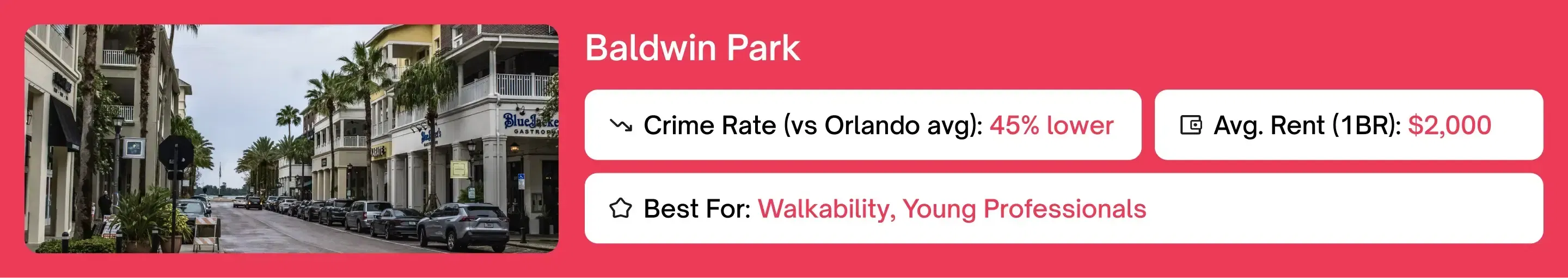 Baldwin Park | 45% lower | $2,000 | Walkability, young professionals |