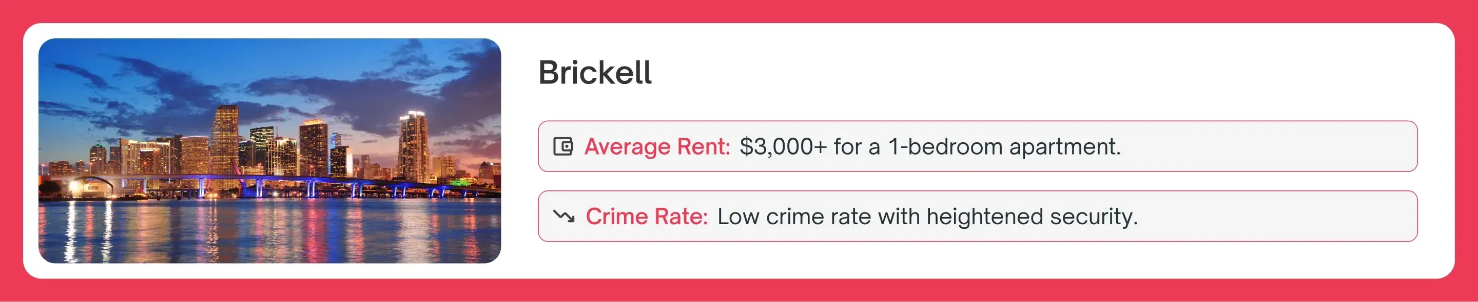 For those who prefer the city vibe while ensuring safety, Brickell is one of the safest places to stay in Miami. Miami’s financial district, often referred to as the city’s "Manhattan," offers upscale living with all the amenities, and it's perfect for professionals. Brickell’s safe areas to stay in Miami are not only due to the neighborhood’s robust security measures but also its walkability, excellent public transit options, and constant surveillance.