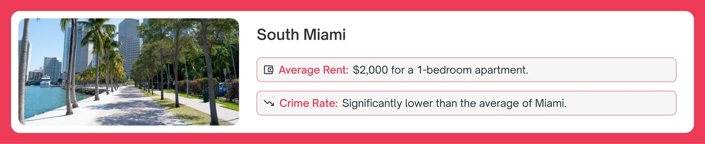 Why is it Safe? The close-knit society and effective neighborhood watches ensure that South Miami is quiet and safe. The region also enjoys constant patrols, earning it one of the safest and quietest neighborhoods in Miami.