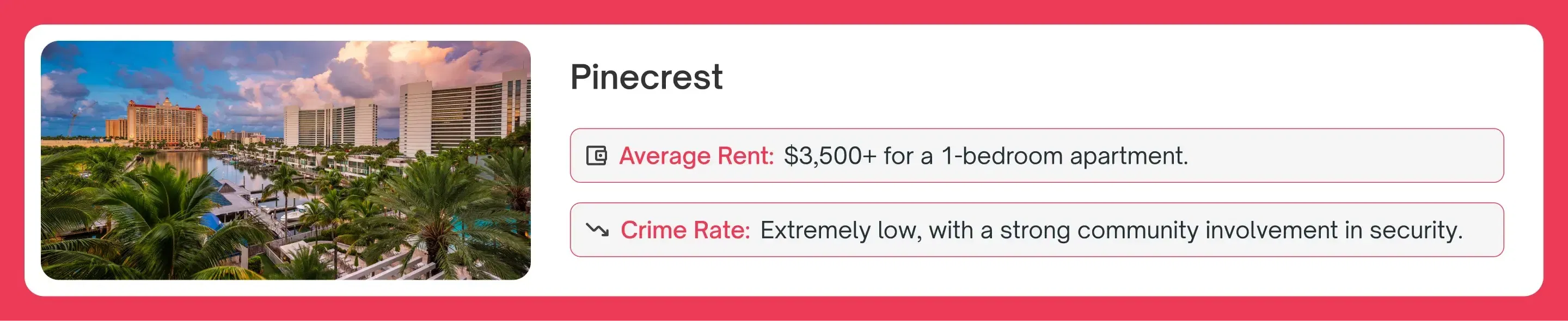 These Miami neighborhoods are all famous for their specialty, whether it is proximity to beaches, kid-friendly atmospheres, or city services. They all share low crime rates, good neighborhood watch, and community involvement, so they're great spots for residents and visitors alike. Whether you are seeking a luxury retreat in Bal Harbour or a quiet, family-oriented neighborhood like Pinecrest, you are sure to find a safe place to live in Miami that suits your needs