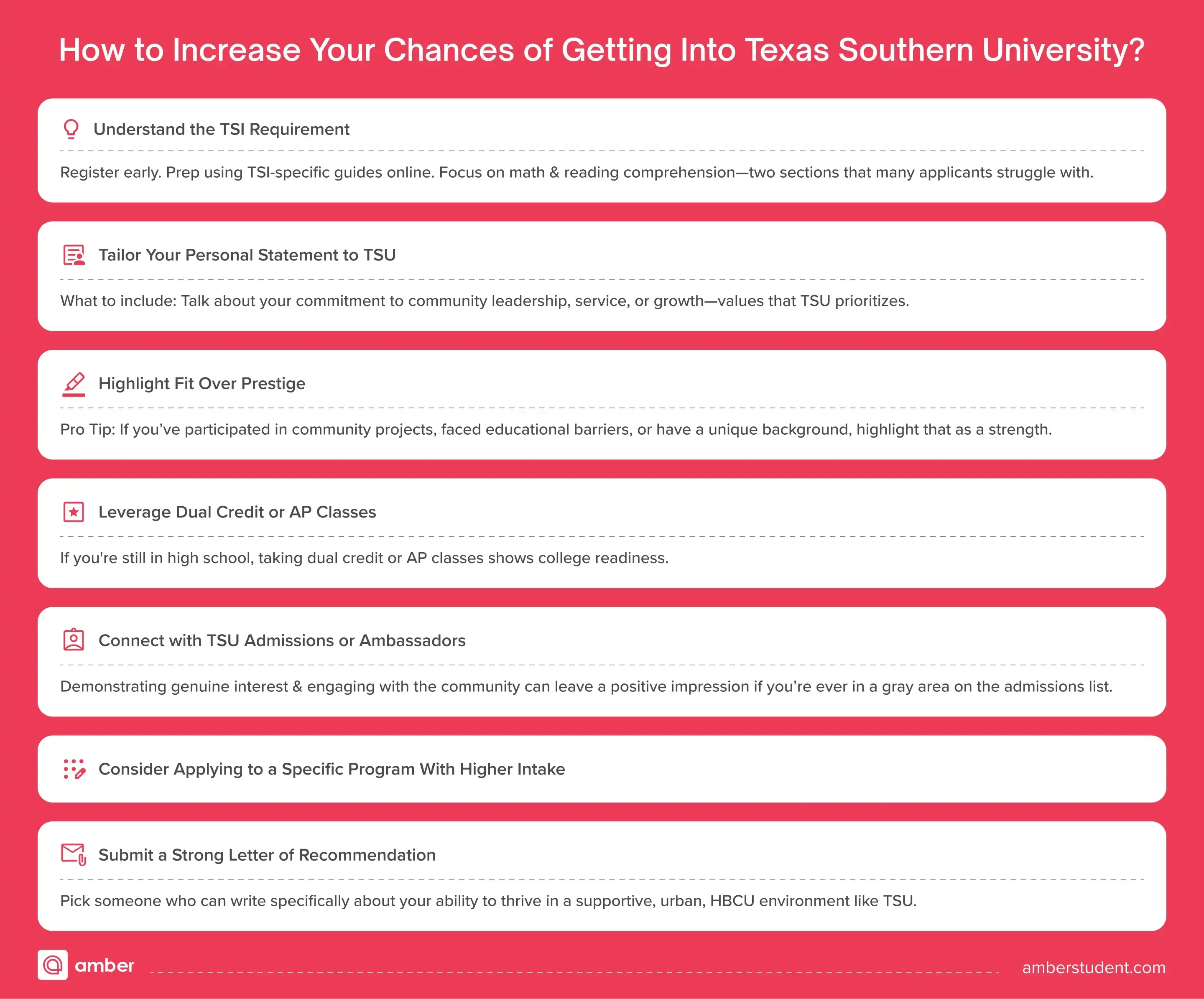If you're serious about improving your odds beyond just meeting the Texas Southern University admission requirements, here are detailed, TSU-specific strategies: