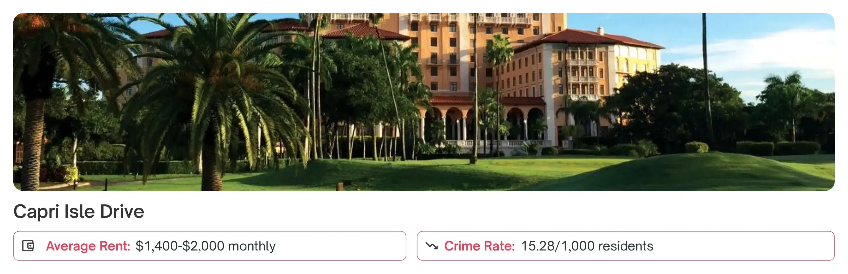 The area is also relatively affordable. That’s why student housing in Capri Isle Drive is very attractive among the University of Tampa students, making it one of Tampa FL best neighborhoods for affordable living.