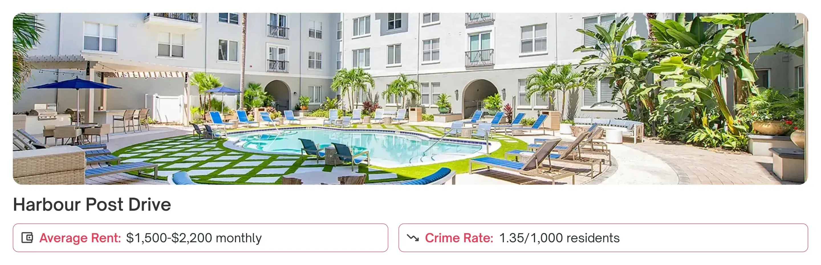 Next up on the list is this region, Harbour Post Drive has quickly become one of the good places to live in Tampa for students seeking security and upscale living. Located near Tampa's busy business district, it maintains a peaceful residential feel.