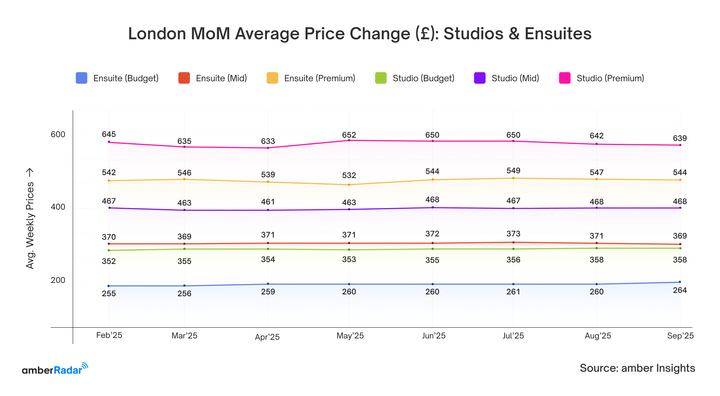 - Pricing trends by room types: Discover how pricing trends of Ensuites and Studios in Budget, Mid, and Premium categories have shifted from AY25-26.For analysis and detailed comparison, amber has defined the Studio & Ensuite room prices data in 3 room categories, namely, Budget, Mid, and Premium. These classifications are not official market standards, but are differentiated to understand the data better.