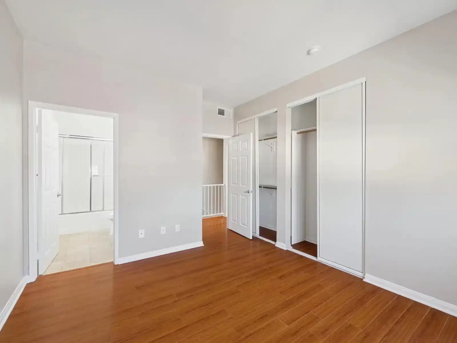 These two-story townhomes feature hardwood floors, central A/C, private balconies or patios, and bright, functional layouts. Units are unfurnished and include full kitchens with a fridge, microwave, gas stove, and dishwasher, plus bathtub/shower combos. On-site parking and EV charging complete the experience.