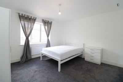 This refurbished five-bed, two-bath flat offers a comfortable, fully furnished double-bedroom space for single use. The bedroom features a double bed, wardrobe, a window to let natural light and breeze in, and a door lock for privacy. The two shared bathrooms maintain a non-ensuite layout, providing practicality and accessibility. Enjoy amenities such as a fridge, freezer, oven, stove, and microwave in your shared kitchen. The in-unit washing machine takes care of laundry hassles. The common areas are thoughtfully furnished for a welcoming vibe. With bills included, your water and electricity are taken care of, plus you'll benefit from complimentary Wi-Fi, monthly cleaning in communal areas, and the convenience of central heating. The property is managed by a dedicated property manager for your convenience. Enjoy the simplicity of a private room in a shared setting, complete with all necessary utilities and comforts for a hassle-free living experience.