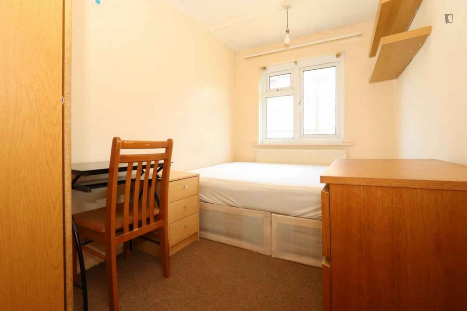 The student accommodation Elephant and Castle have rooms like Double Bedroom in 4 Bedroom 1 Bathroom Apartment. The Elephant and Castle student accommodation offers a private room in a shared setting, ideal for students looking for comfort and convenience. The room features a double bed, wardrobe, chest of drawers, desk, and chairs. A window ensures natural light, while a door lock provides security. Students can enjoy the use of a shared bathroom and a shared kitchen equipped with modern appliances like a fridge, oven, stove, microwave, and washing machine. This student accommodation in London includes four bedrooms and two bathrooms, catering to the needs of a small student community. Each room is thoughtfully designed with essential amenities to enhance the living experience. The kitchen also features a table and sink, making it a practical space for meal preparation and socializing. The Elephant and Castle student accommodation ensures a balanced blend of privacy and shared living, perfect for students seeking a supportive and well-equipped environment.