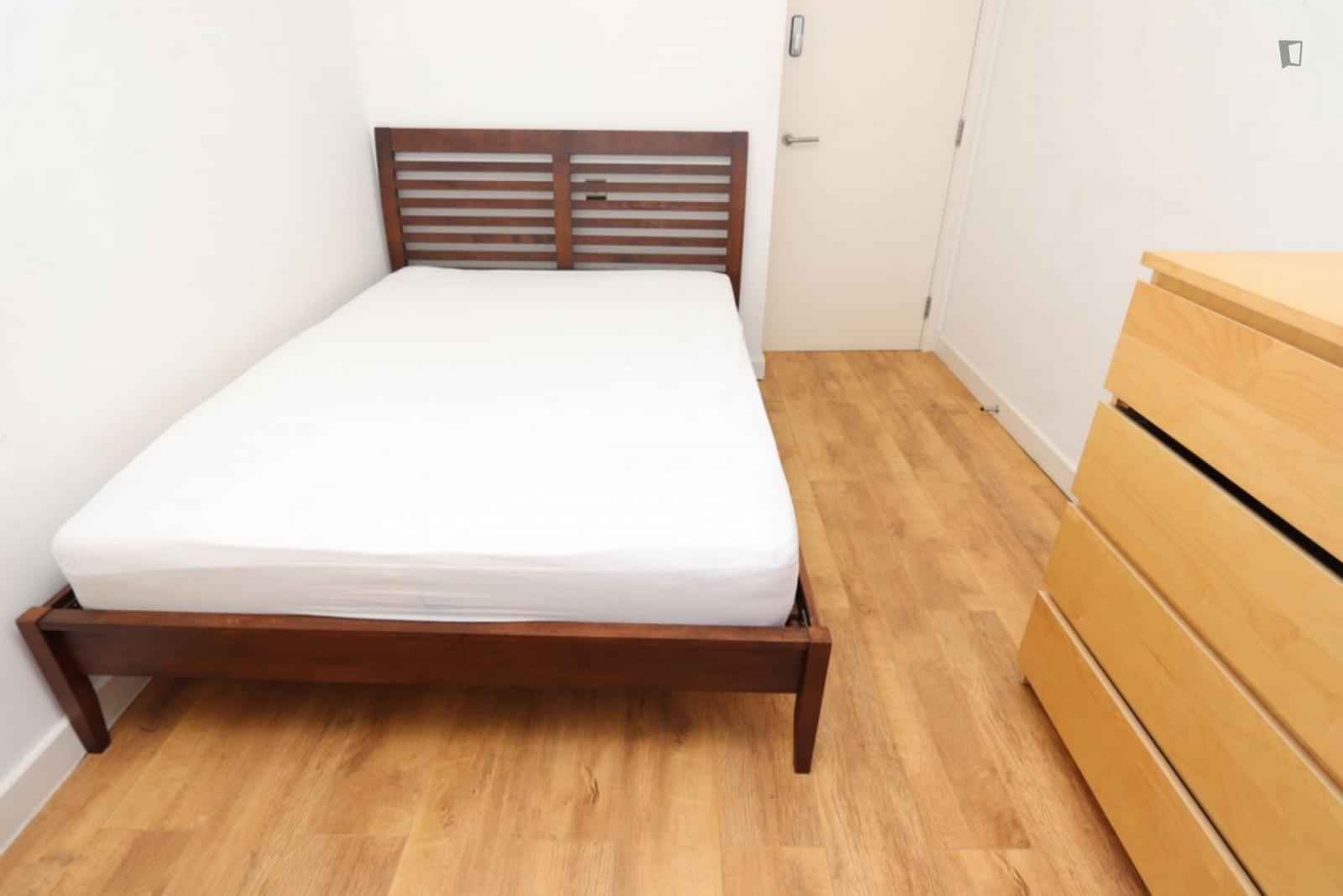 A fully furnished double bedroom within a three-bedroom, one-bathroom house-share. Perfectly located in zone 2 with easy transport links to central London.North Greenwich tube station is very close by.