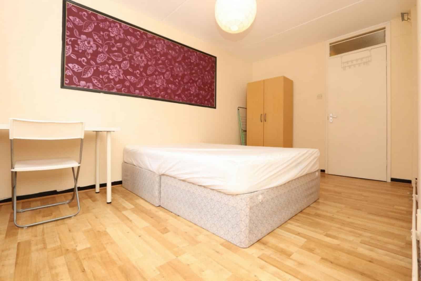 This is a modern double room, well-presented totally furnished. This large double room can be used for couple. Fully fitted Kitchen,common bathroom. Comfortable (easy to clean) wooden laminate flooring. Free Internet Relocation service Near station (bus, tube)-few mins away from station