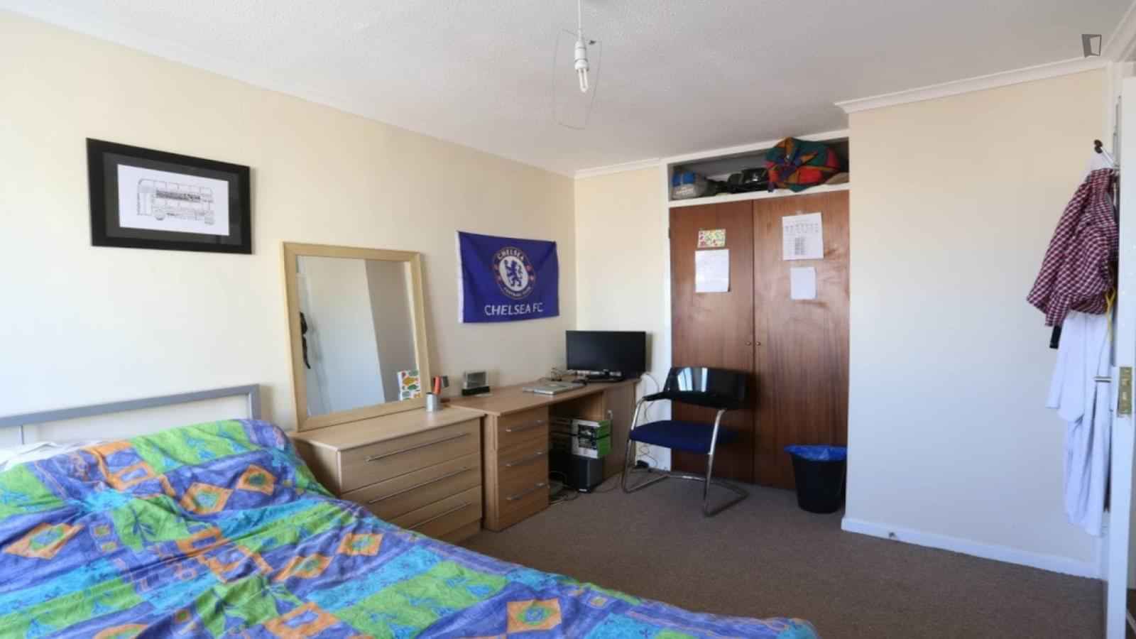 This four-bedroom flat is situated in Mile End, next to the peaceful Mile End Park. It is also around a 7-minute walk from Mile End underground station, where you can catch the Central, Circle, District or the Hammersmith and City line making the commute to the city centre right on your door step! The recently renovated kitchen is supplied with all appliances, fridge freezer, washer/dryer, microwave, toaster, and kitchen utensils, pots and pans and crockery. The house has a beautiful bathroom, offering you shower facilities and a bath for when you want to unwind and relax. The modern lounge allows you to relax after a long day in front of a 30-inch flat screen HDTV with Freeview. All double rooms come fully furnished with their own aerial point and lockable doors for extra privacy.
