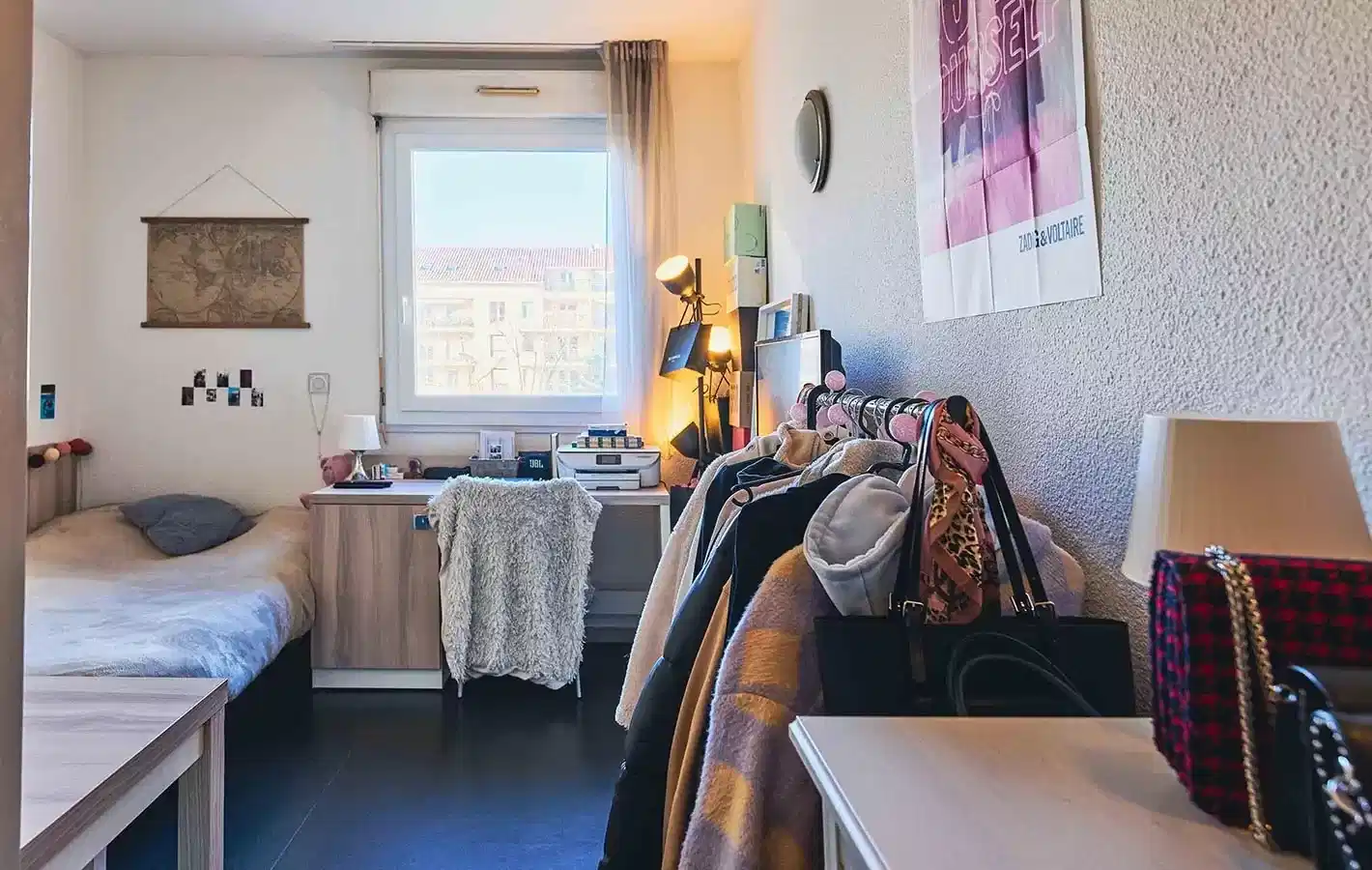 Beyond your room, the residence includes common amenities that support both study time and downtime. There’s a reception area for quick help, a laundry room for weekly chores, and a common room with a babyfoot when you need a break. You also get ultra high speed wifi, a dishware kit, and access to a loan of household appliances, all of which make moving in lighter. Bills cover internet, a linen kit, and cold water, keeping costs predictable. Safety is handled through secure access, badge entry, surveillance cameras, and an on-site manager, creating a steady and comfortable environment without complicating your routine.