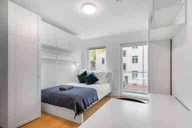 Your apartment is fully furnished for you to live comfortably from day 1. Additional common-use items such as iron, clothes rack, and washing machine* are included. The kitchen is fully equipped with cooking utensils, a fridge, a dishwasher, and a stove. Cook your heart’s desires! Your room also awaits, fully furnished and clean! You will find a bed and bed linens, a bedside table, and a wardrobe in your room. If you book a room larger than 10m2, you also get a desk and a chair.* All you need to do is pack your clothes and move into your new PMG home! Some buildings offer a shared laundry room and others a washing machine inside the flat.