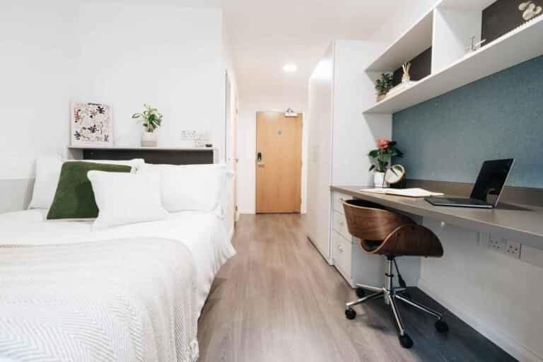 A lot of varieties are available for student housing in Oxford. These room types fit different lifestyles, budgets, and preferences. Amber offers fully furnished, high-quality rooms. Student apartments in Oxford are often modern, purpose-built blocks with amenities like gyms and study areas. Most private student accommodation Oxford includes various types of studios, suites, and shared rooms. Whether you need a quiet place to study or a social space to meet new people, we have what you need. Here’s a breakdown of the room types available in student halls Oxford: