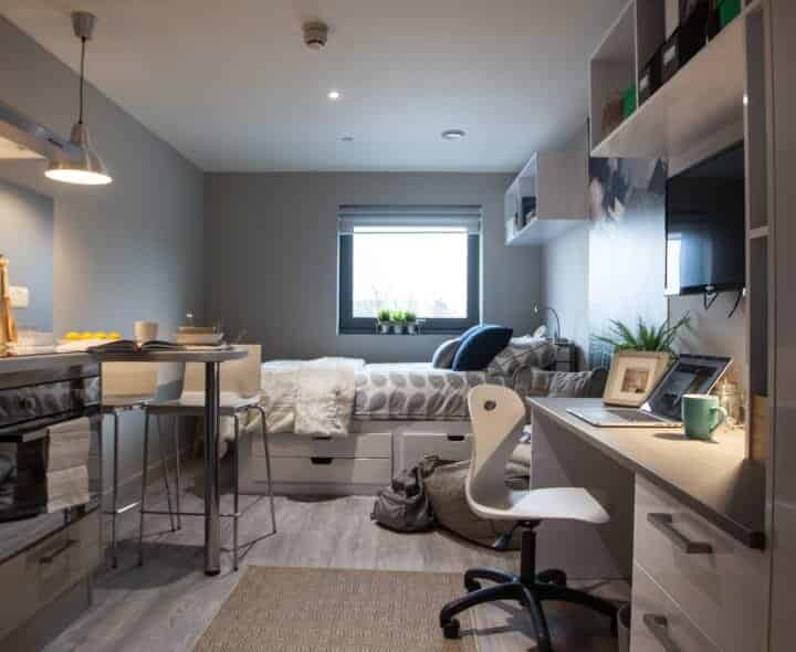 3. Studio Apartments: Student studios Southampton are fully self-contained units with a private bedroom, bathroom, and kitchen. This student residence Southampton offers complete independence, making it ideal for mature students or those with intensive study schedules who prefer total privacy. Studio apartments in Southampton student accommodation are fully self-contained units with a private bedroom, bathroom, and kitchen.
