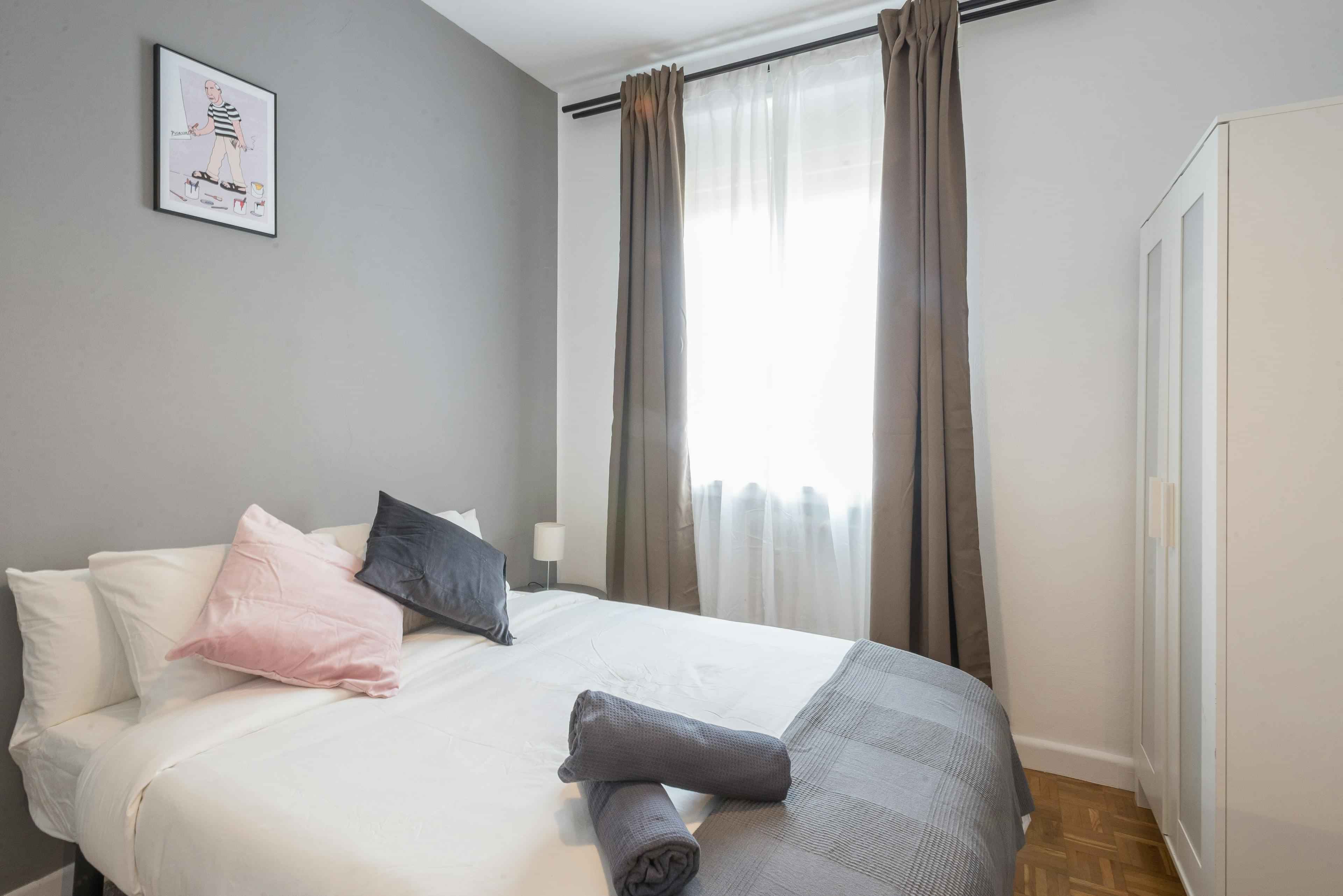 Cozy room in Madrid Centro in a newly renovated apartment. The room has all that you need to live, work and study here. From appliances to linen and towels, internet and more.