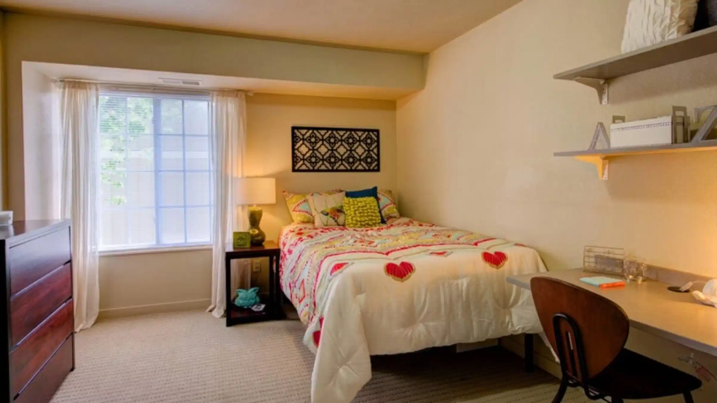 Private rooms in Kalamazoo student apartments typically include a bed, study desk, and sometimes a private bathroom.