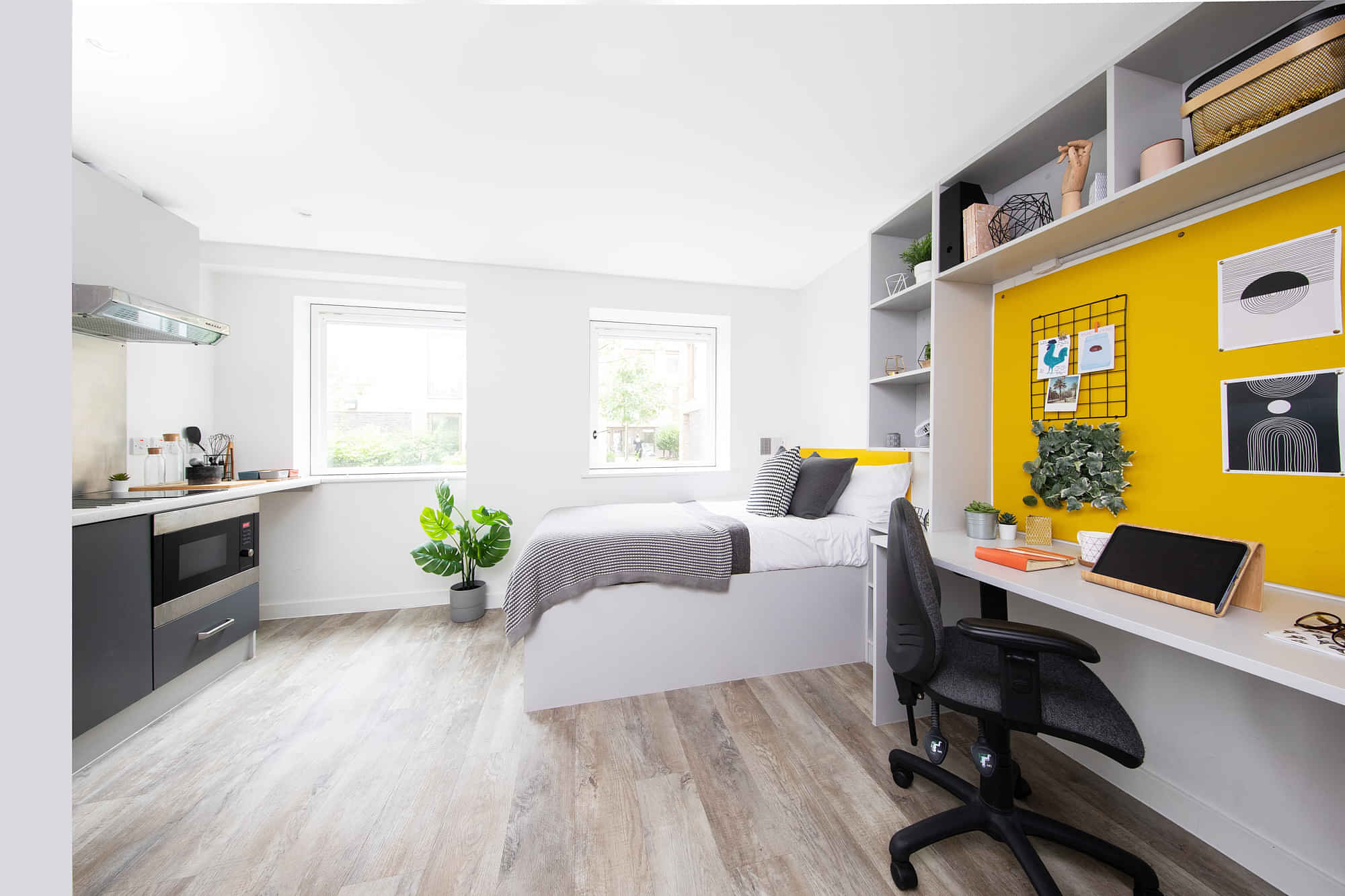 With a mission to provide utmost comfort and luxury to students, Collegiate Cathedral Point provides a range of room types like Bronze or Silver Ensuites and Gold or Bronze Studios to cater for whatever you may need. Depending on the room you prefer for your academic journey the property features a double bed with under bed storage, a study area for convenient and focused studying, a shower room, a fully fitted kitchen to cook up a feast, and a flat screen TV. The ensuites have a shared kitchen and can have multiple rooms so you can live large with your friends. Your rent covers essential utilities including WiFi, water, electricity, and heating, ensuring a hassle-free and enjoyable stay.
