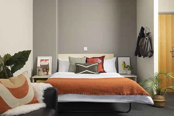 Non-ensuite rooms are budget-friendly, offering a private bedroom with shared bathroom, kitchen, and living areas. These Leeds accommodations are ideal for students looking to get a personal space for sleeping and studying without high costs. This setup fosters a social atmosphere while remaining affordable, a good fit for students who prioritise budget over full privacy.