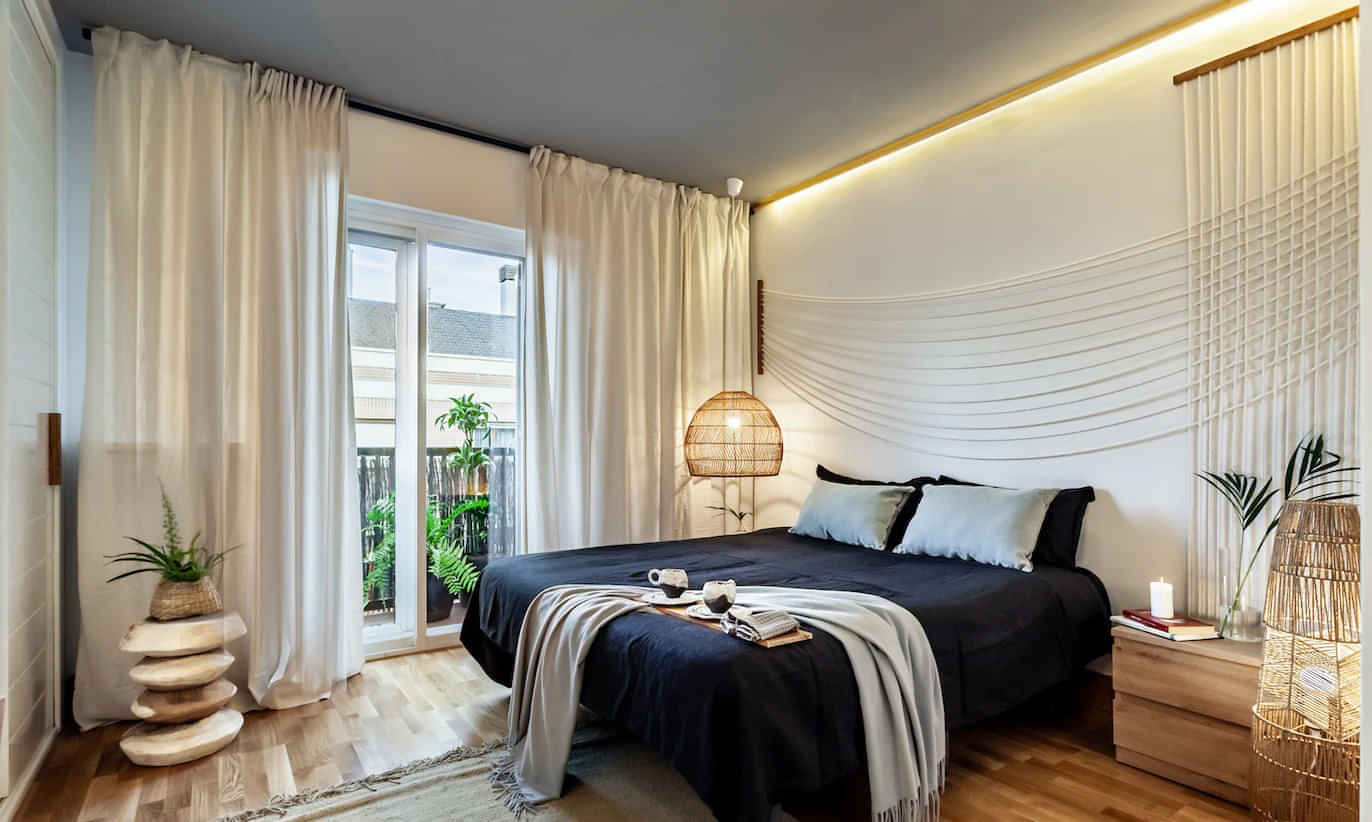 Echo draws inspiration from the sandy shores of Indonesian beaches with its light and airy design. Comprising 2 bedrooms, 2 and a half baths, and 2 balconies, the space has a warm and calm ambiance. The first ensuite bedroom offers a canopy queen-sized bed and a full bathtub with shower. The second ensuite bedroom with a private balcony and custom-built work area includes a queen-sized bed and a unique design with rattan lamps. A half bath is available for guests. The spacious kitchen welcomes with light wood detailing and a fully furnished space equipped with cooking utensils. A breakfast nook adds to the convenience. The luminous living room boasts a dining area with a rustic table and custom-built bench, while the lounge area features a hanging chair and dedicated workspace. The apartment is equipped with a ducted air system for absolute comfort, accommodating 2 to 4 people. Common amenities include a remote work area, vinyl record player, parking space, not to mention high-speed Wi-Fi, and a pet-friendly policy. Safety is prioritized with a first aid kit and smoke alarm. In addition to everything, you can also enjoy air conditioning, a smart TV, and fresh linens and towels, ensuring a comfortable and stylish living space.