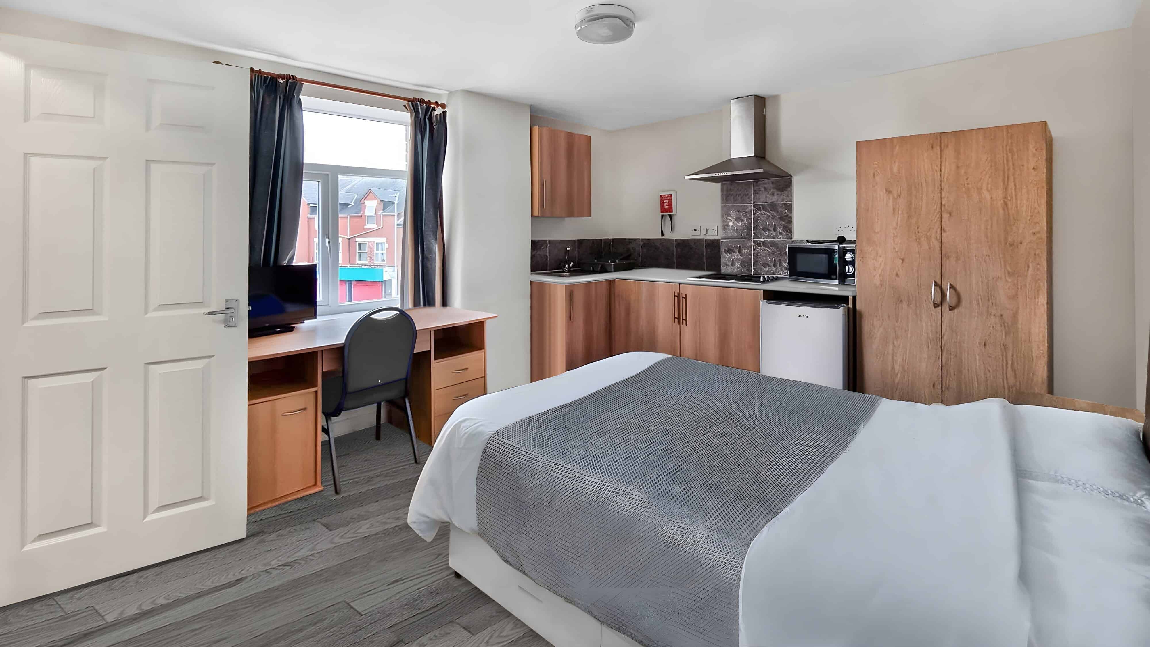 1. Q Studios – ★★★★☆ (4.5/5) – A modern high-rise with excellent facilities and stunning city views, close to the universities. The property costs £135 per week.