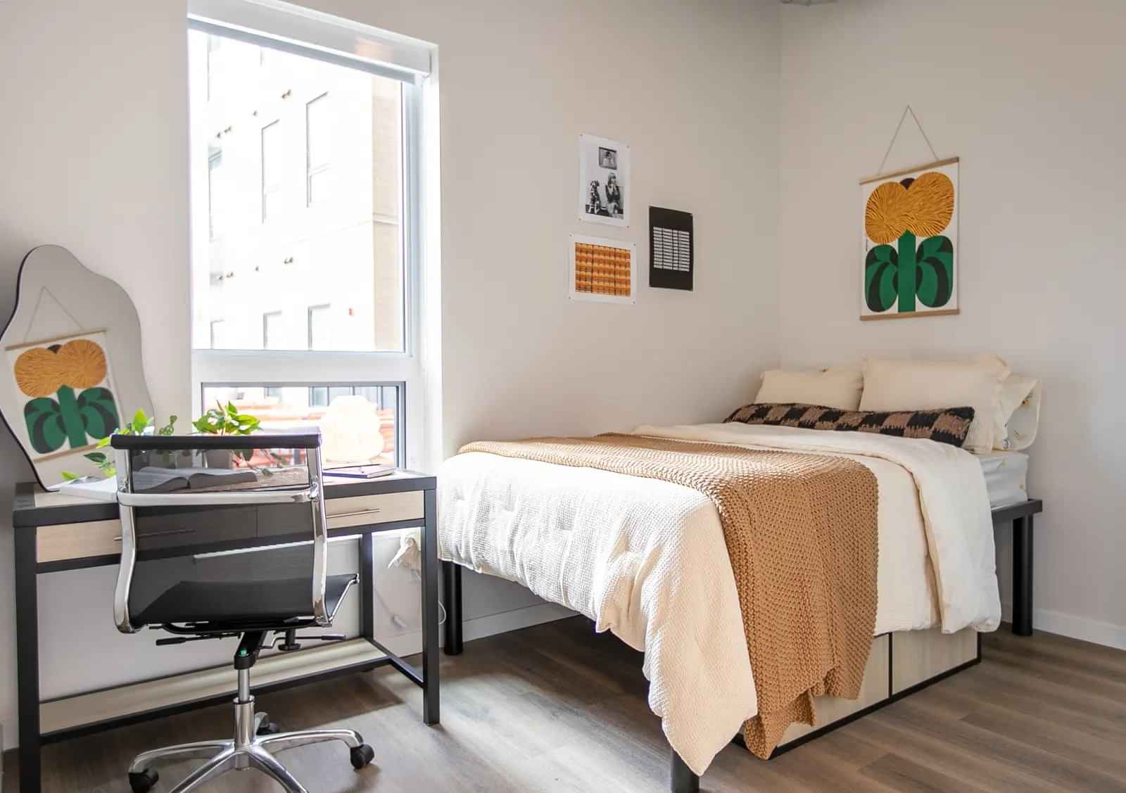 These rooms offer a private bedroom with shared access to a kitchen and bathroom. It’s a mix of privacy and shared living that works well for students who are new to the city. This option is also usually more affordable than living in a studio or a 1-bed apartment.
