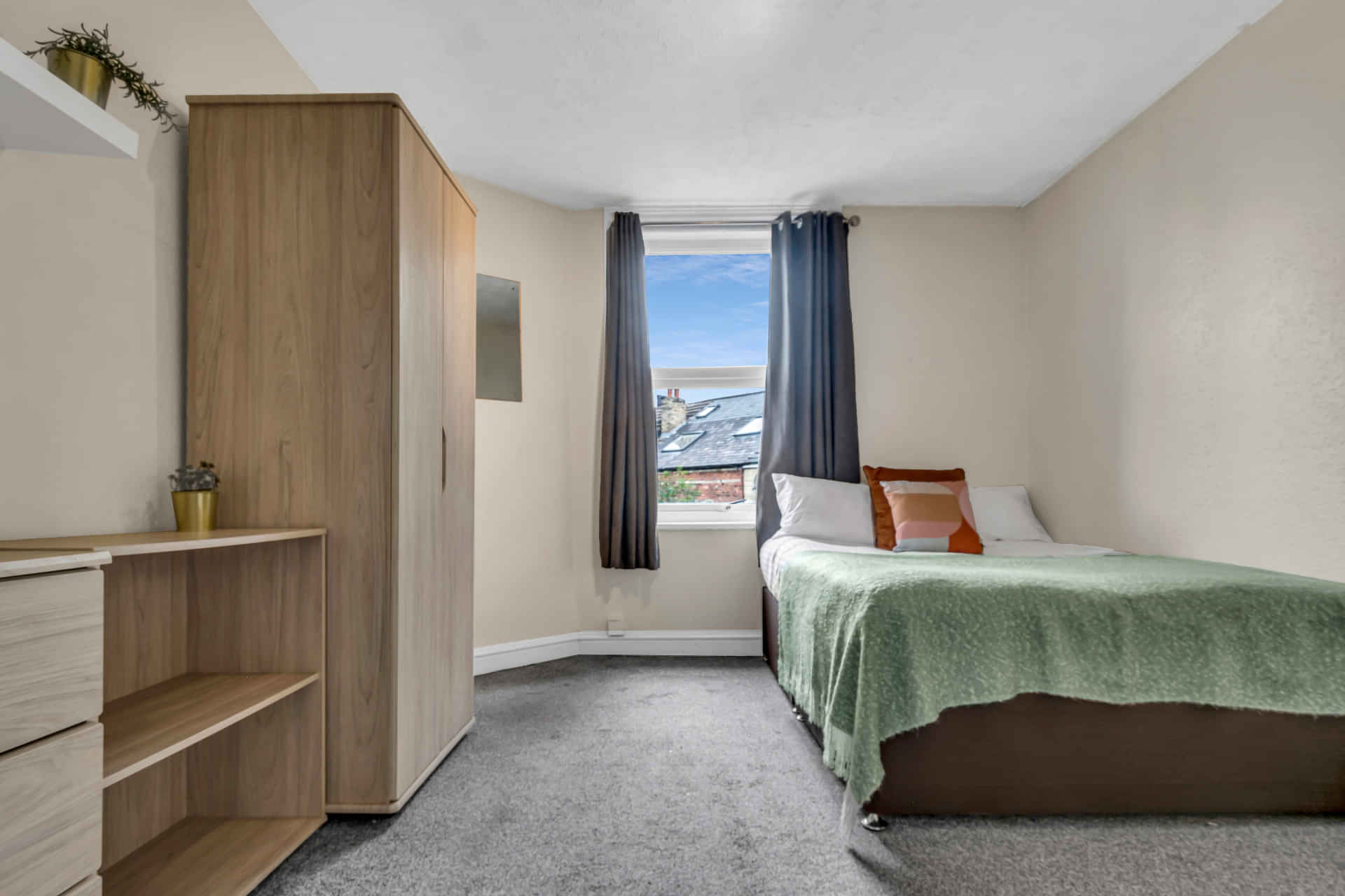 Non-ensuite rooms are budget-friendly, offering a private bedroom with shared bathroom, kitchen, and living areas. These Leeds accommodations are ideal for students looking to get a personal space for sleeping and studying without high costs. This setup fosters a social atmosphere while remaining affordable, a good fit for students who prioritise budget over full privacy.