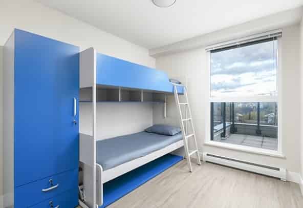 Non-ensuite rooms are budget-friendly options that provide a private bedroom, while the bathroom, kitchen, and living areas are shared. This type of accommodation for international students in Vancouver allows them to have their own personal sleeping and study area while making use of shared facilities.