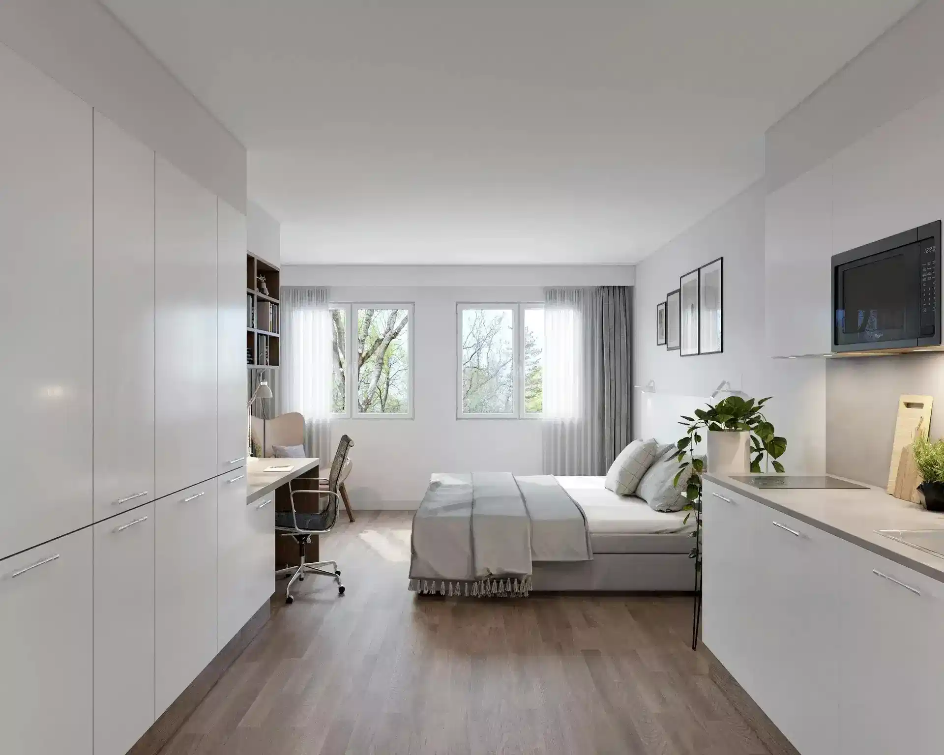 Ensuite rooms are among the most popular options in Berlin. These rooms provide a private bedroom and attached bathroom, giving students personal comfort without fully isolating them from community living. Kitchens and lounges are typically shared, allowing a good balance between independence and social interaction. This room type is ideal for students seeking privacy and convenience while still enjoying a shared apartment setting.