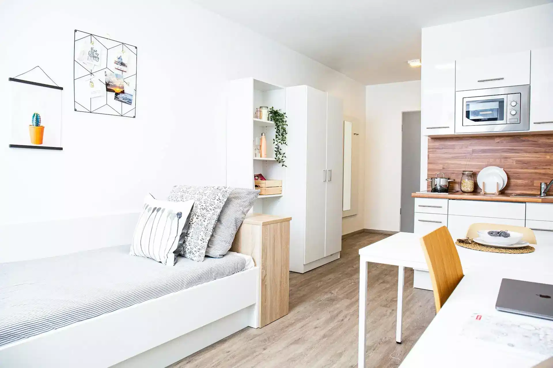 3. Studios: Self-contained wohnung units with kitchenette or pantry kitchen, private bathroom and study space. Suitable for independent students seeking private apartments for rent in Kiel.