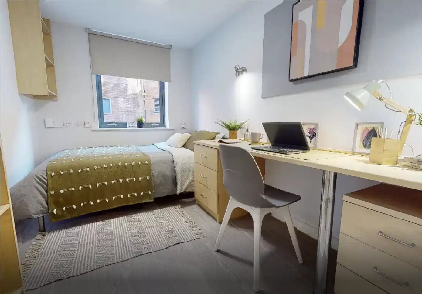 Private rooms in many Sheffield student accommodation options comes with their own space and have facilities such as a bed, study desk, and a private bathroom.