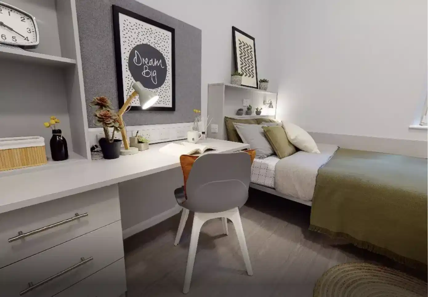 These are equipped with an oven, hob, microwave, fridge and freezer, a dining area and lounge. These rooms are popular with new students and encourage social interaction with other residents. Studios – their studios are self-contained, with integrated kitchen facilities and a living area. All have a bed, study area with good lighting, storage and an en suite shower room with shower, washbasin and WC. Studios are popular with students seeking more privacy, but still enjoy the use of all the onsite facilities and social areas.