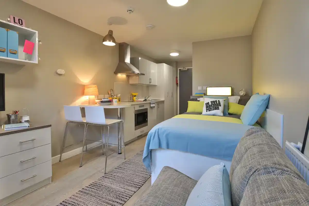 All studios come with a full kitchen including a convection cooker and fridge, ensuite bathroom and ¾ bed as standard.
