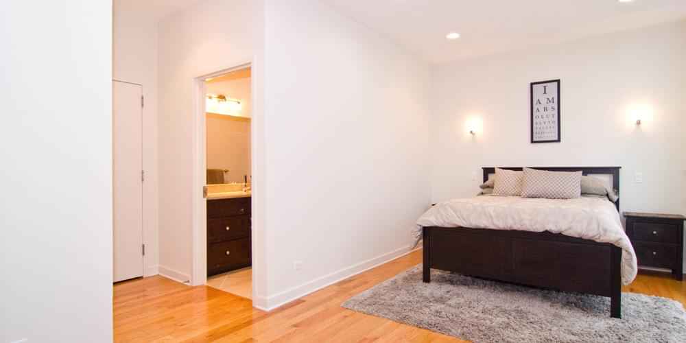 At Jefferson Park Chicago student housing, students can find a comfortable home in the energetic heart of the city. Offering modern 2 Bed 2 Bath ensuites, this property ensures a tranquil and stylish living space for its residents. Jefferson Park student housing offers a range of thoughtfully designed room and apartment amenities that cater to both comfort and style. Each unit is equipped with a comfortable bed, an in-unit washer and dryer, and a private balcony for relaxation. The interiors feature double thermo-pane windows with argon gas insulator, ensuring energy efficiency and noise reduction, alongside hardwood floors throughout for a sleek finish. The kitchens boast high-end stainless steel appliances and granite countertops, perfect for culinary endeavors, while the bathrooms are outfitted with porcelain tile and a luxurious whirlpool tub for a spa-like experience. Additionally, the inclusion of walk-in closets provides ample storage, making these rooms a perfect blend of elegance and functionality for students.