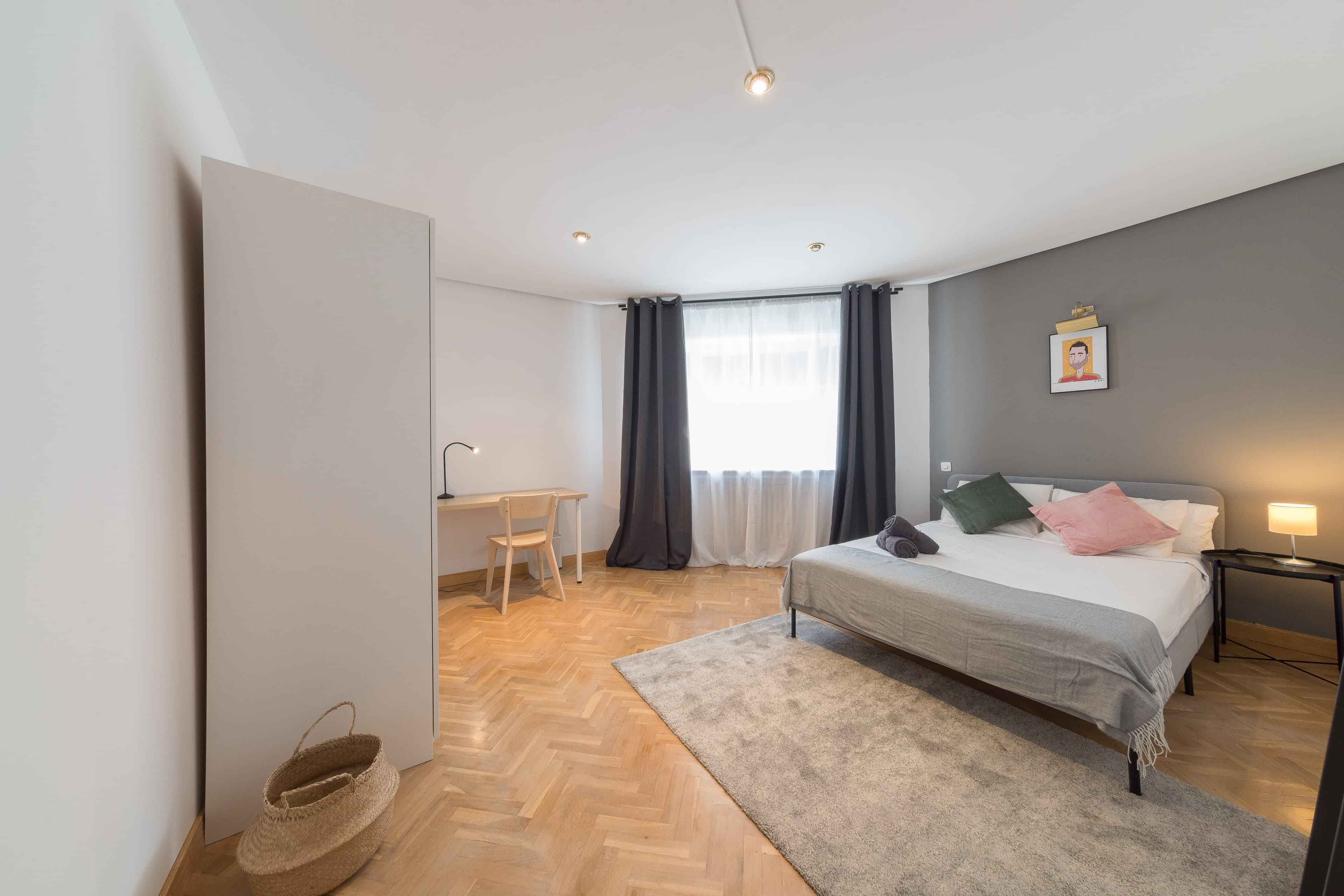 Cozy room in Madrid Centro in a newly renovated apartment. The room has all that you need to live, work and study here. From appliances to linen and towels, internet and more.