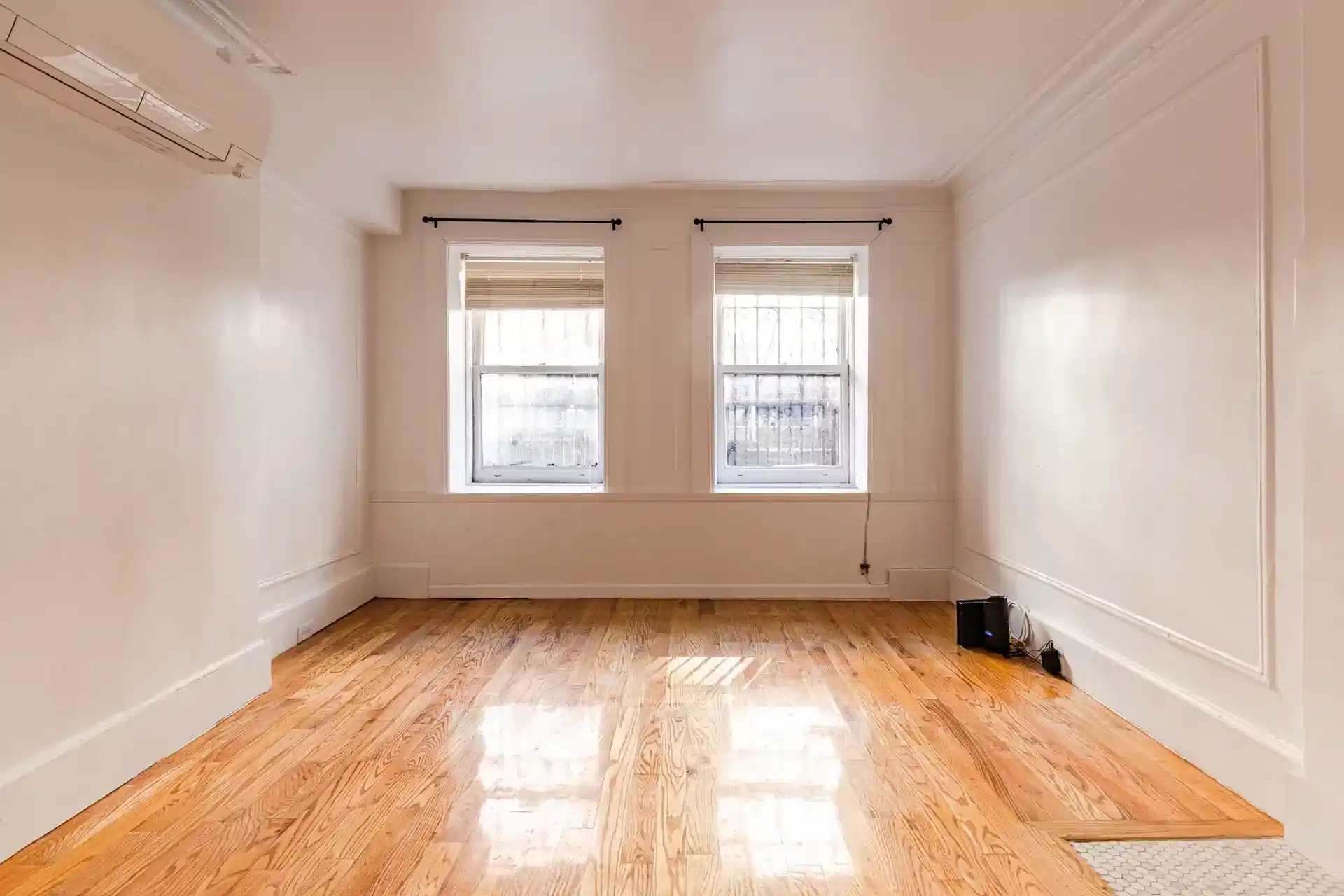 This 1 bedroom can accommodate a queen size bed. Other features of this apartment are couples friendly, decorative fireplace, smoke-free, guarantors allowed, living area, mini-split heating, hardwood floors, oven, and refrigerator.