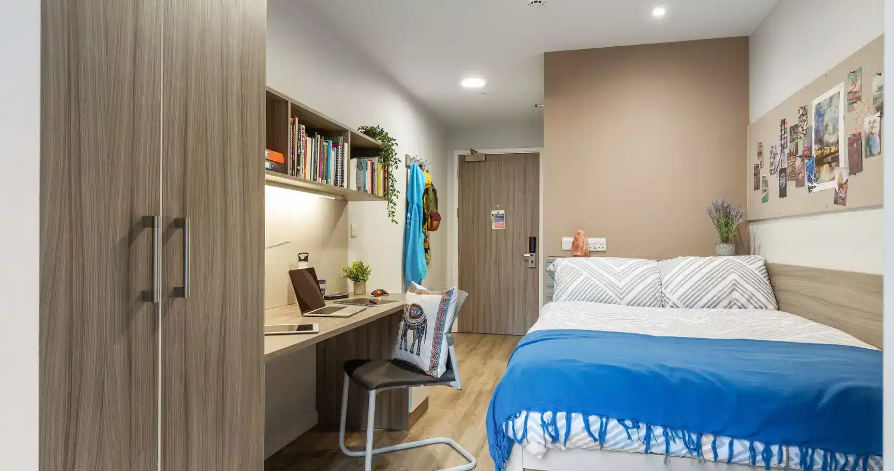 3. Studio Apartments: Fully self-contained, studios include a bedroom, bathroom, and kitchenette. Perfect for students who prefer independence, these apartments allow full control over living space. It is ideal for mature students or those with intense study schedules.
