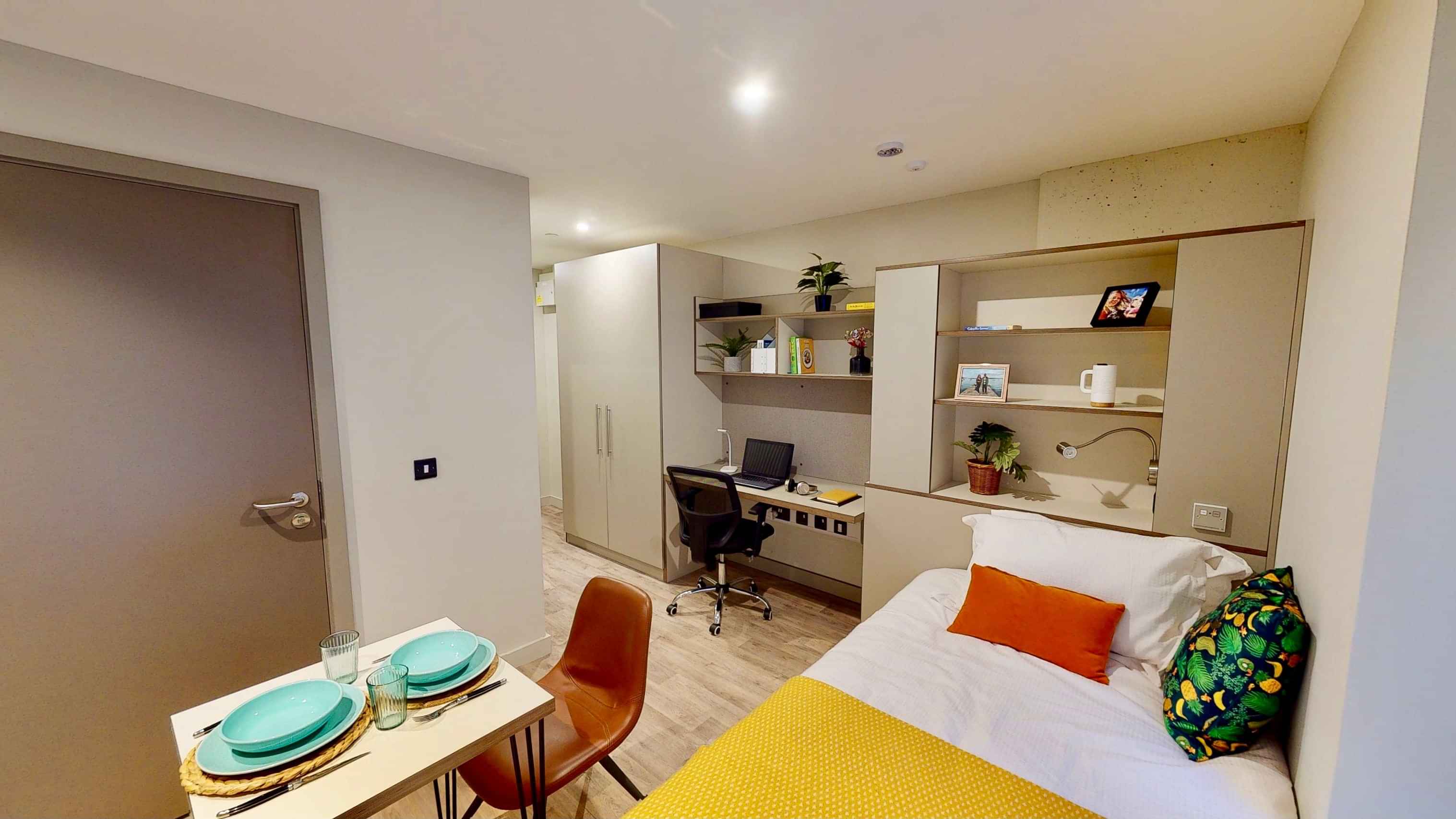 3. Studio Apartments: Standard Studio apartments in Belfast are fully self-contained units, featuring a private bedroom, bathroom, and a compact kitchen area. With no need for shared spaces, studios offer maximum privacy and independence, making them ideal for students who prefer a complete living area of their own.