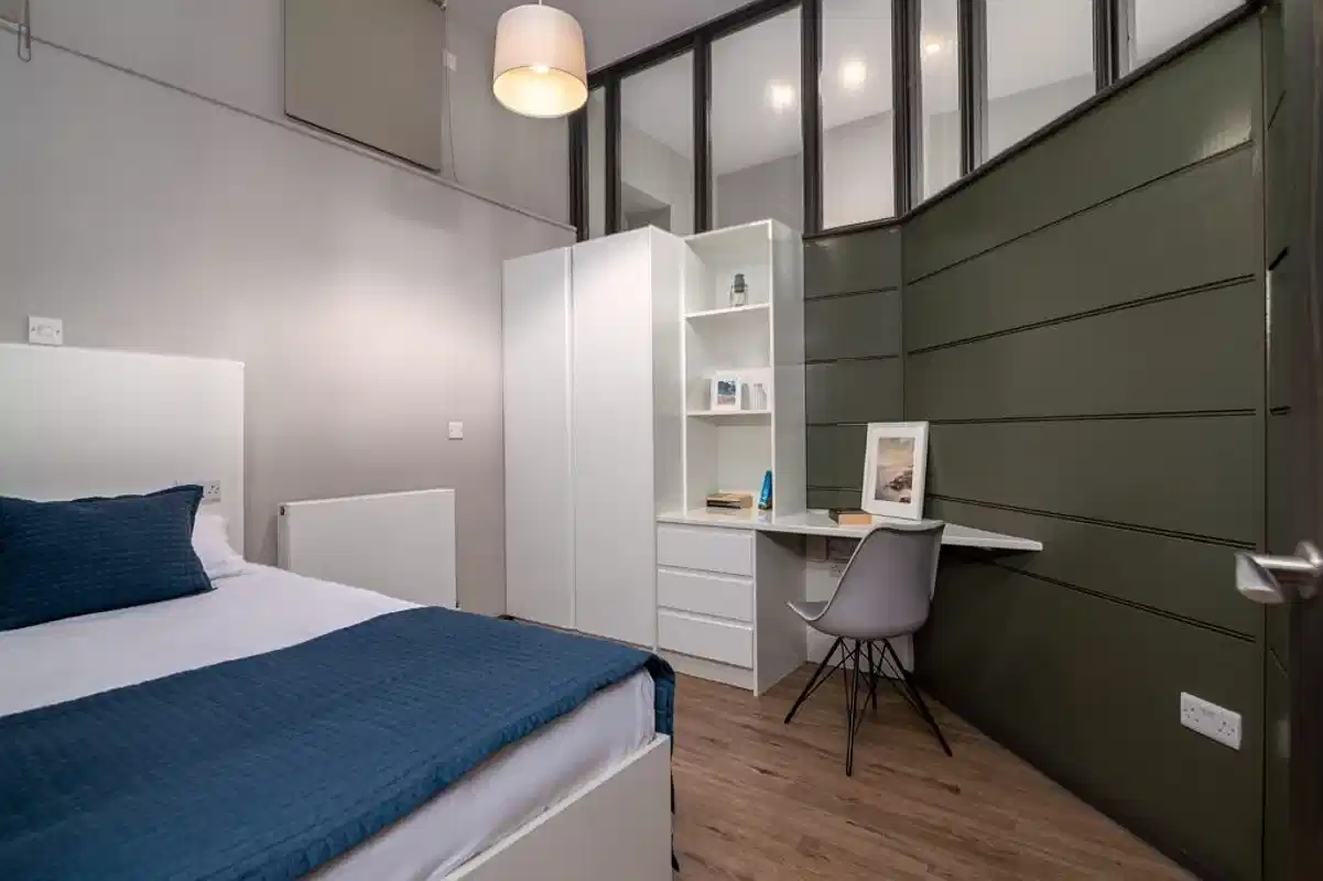 All bedrooms include a standard UK double bed (135 x 190 cm). However, residents will need to bring their own bedding and mattress protector.