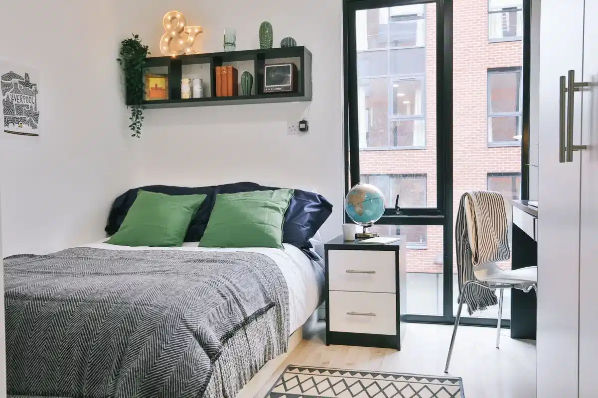 Step outside, and you’re pretty much in the University of Liverpool. Just a five minute walk towards the city, and you’re at John Moore’s University. And if you don’t fancy walking anywhere, just wait for the bus. That’ll take you pretty much anywhere in the city: the upmarket restaurants in the Docks, the Liverpool One shopping centre, and even the nightclubs of Concert Square.