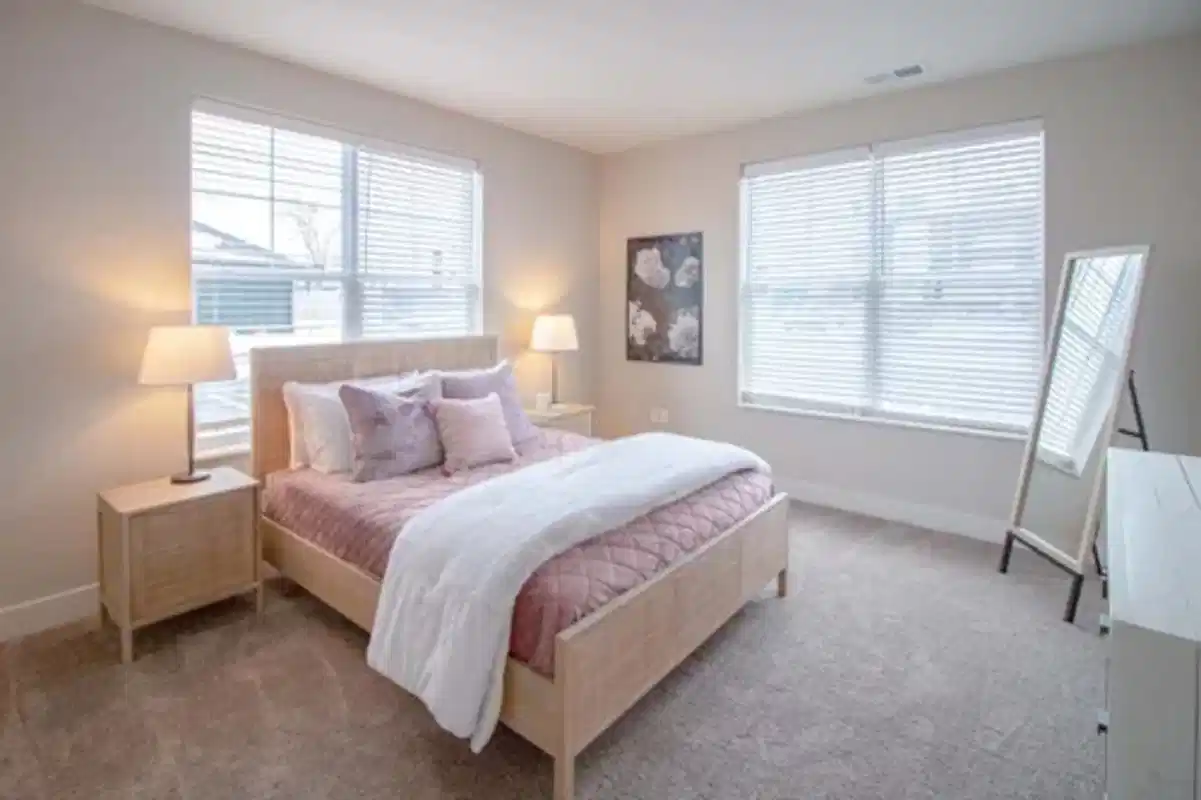 Marina Lofts Toledo offers spacious options like Room in 2 Bedroom 2 Bathroom | The Park or 1 Bedroom 1 Bathroom | The Shore with private rooms, private bathrooms, and shared kitchens, covering up to 1121 sqft of living space. These apartments are thoughtfully designed to enhance student comfort and also feature beautiful scenic views of the Maumee River and the Toledo skyline. Many units at Marina Lofts Toledo come with a private balcony or patio, perfect for enjoying fresh air and city vistas. Inside the apartments, you’ll find granite countertops, a modern appliance package, and stylish wood-style plank floors. The apartments also boast dedicated walk-in closets, a washer and dryer for laundry, and designer lighting and fixtures throughout, combining functionality with contemporary design. The unique lifestyle here is reflected in Marina Lofts Toledo reviews.