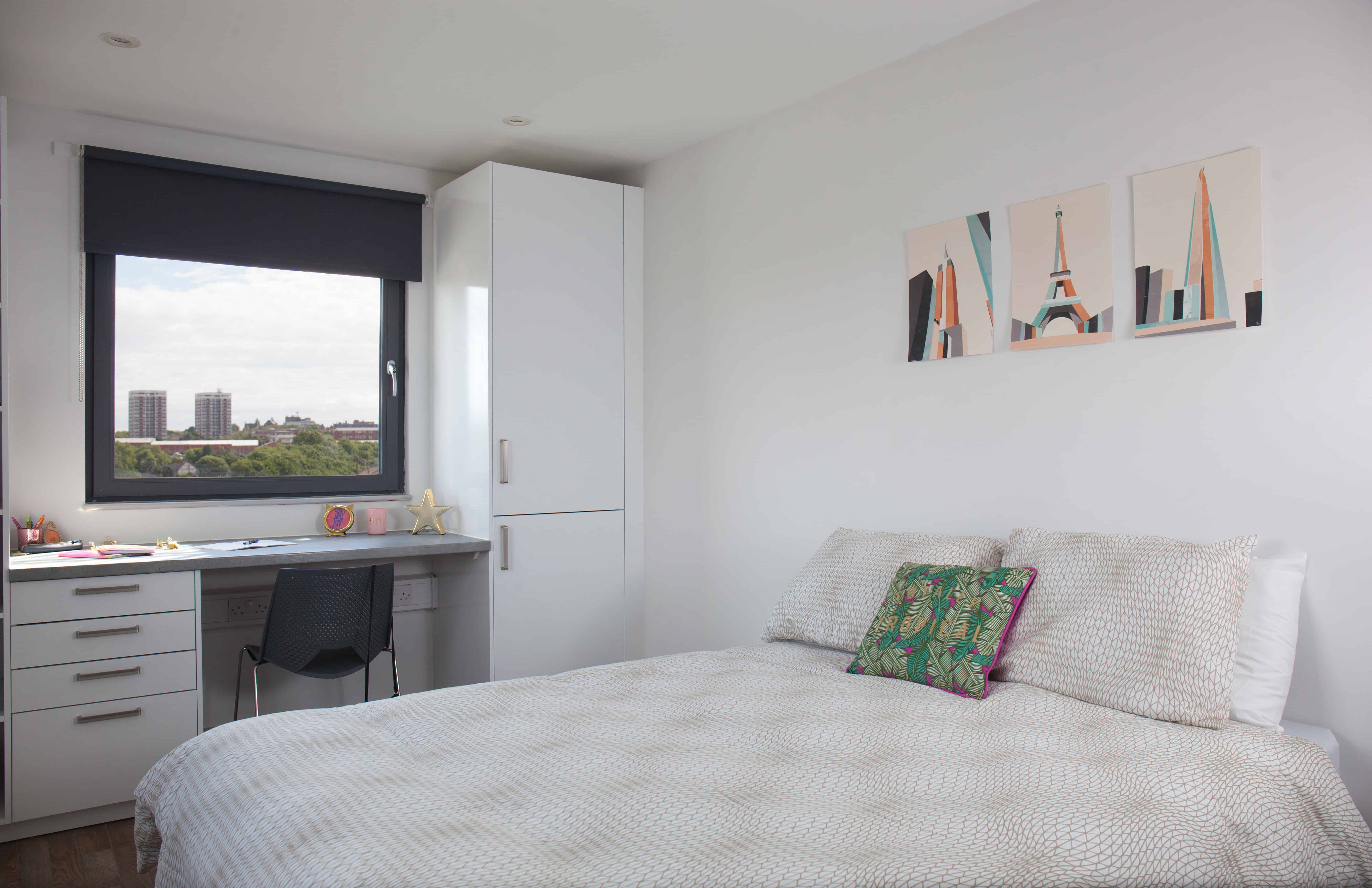 Newcastle upon Tyne offers a wide range of accommodation options designed to meet different needs and budgets. Newcastle students can choose from private student halls and shared living accommodations ranging from studios to multi-bedroom apartments. Purpose-built student accommodation (PBSA) is often located near universities or in the city centre and provides modern facilities. Private accommodation often consists of modern en-suite rooms or self-contained studios, which include a private kitchen and bathroom. Whether you prefer privacy or a social setup, there’s something for everyone. Here’s a quick guide to the most common room types: