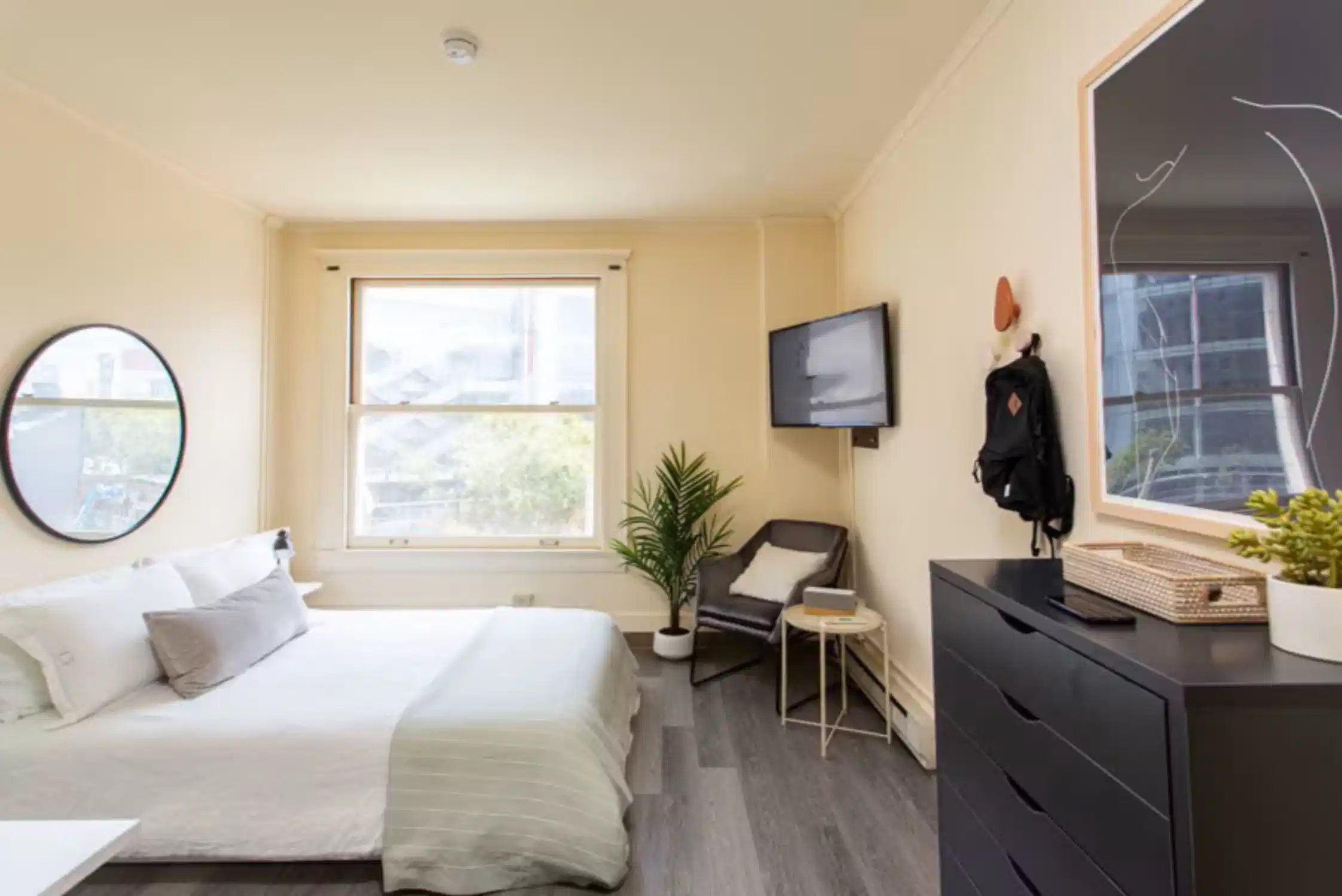 Non-ensuite rooms in San Francisco offer a private bedroom but with shared bathroom, kitchen, and living spaces. These student apartments in San Francisco are a budget-friendly option for students who don’t mind sharing facilities with housemates.